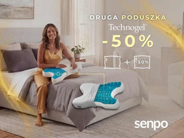 PROMOCJA Senpo Promocja obowiązuje w dniach: Do 30.04.2026 Dwie poduszki Technogel w cenie, którą pokochasz! W salonie Senpo czeka na Ciebie wyjątkowa oferta.Kupujesz dwie poduszki Technogel, a za tańszą płacisz połowę. Sklepy biorące udział SENPO